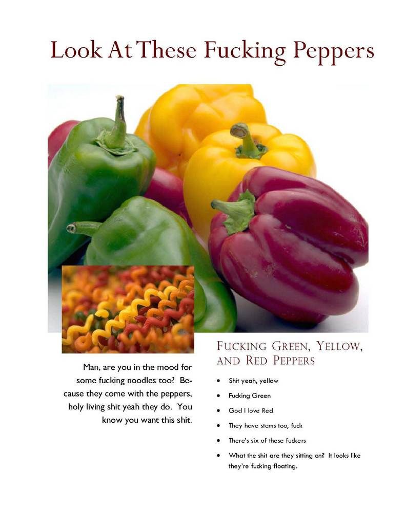 Fucking Peppers! Published March 11, 2012 at 792 × 1024 in Cooking With Foxfur: Stir-Fry Share the pain: Click to email a link to a friend (Opens in new window) Email Like Loading...