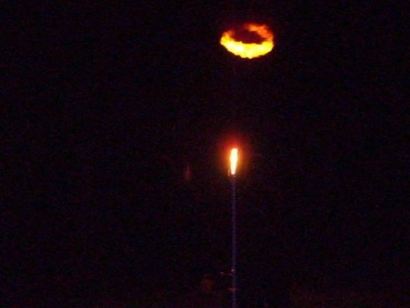 The ear fountains started up. I thought they’d be higher up but whatever, they burned and made lotsa sparks. I worked the ground crew, others did the vertical sets.
