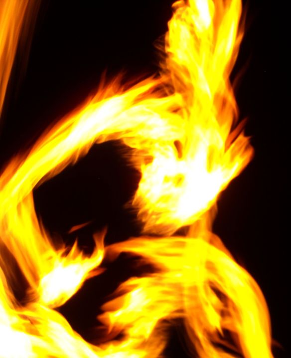 The dog was pointed perfectly into the wind. The flames trailed behind it like fur. The eddy behind the blazing canine blended the wind with the extreme thermal turbulence provided by the hellacious blaze and spawned many fire devils. Smoke devils, too.