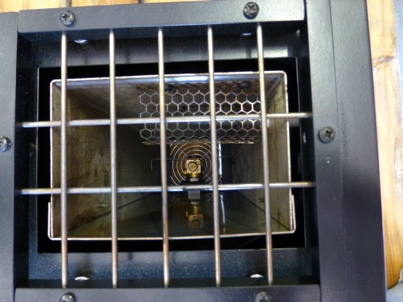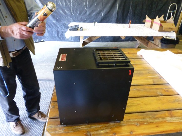A diesel bucket atop cordwood in the base of Anubis. The flare can be seen through the hole. The wires lead to the firing slat and then on to the firing board.